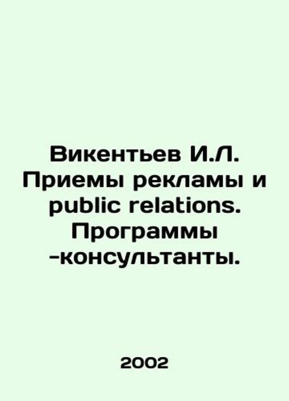 I.L. Vikentiev Advertising and public relations. Consultant programs. In Russian /Vikentev I.L. Priemy reklamy i public relations. Programmy -konsultanty. Edition 6, addendum S.Pb.TRIZ-CHANCE 2002. 380 pp. We have thousands of titles and often several copies of each title may be available. Please feel free to contact us for a detailed description of the copies available. SKUalb3ee021efbd9368c8.