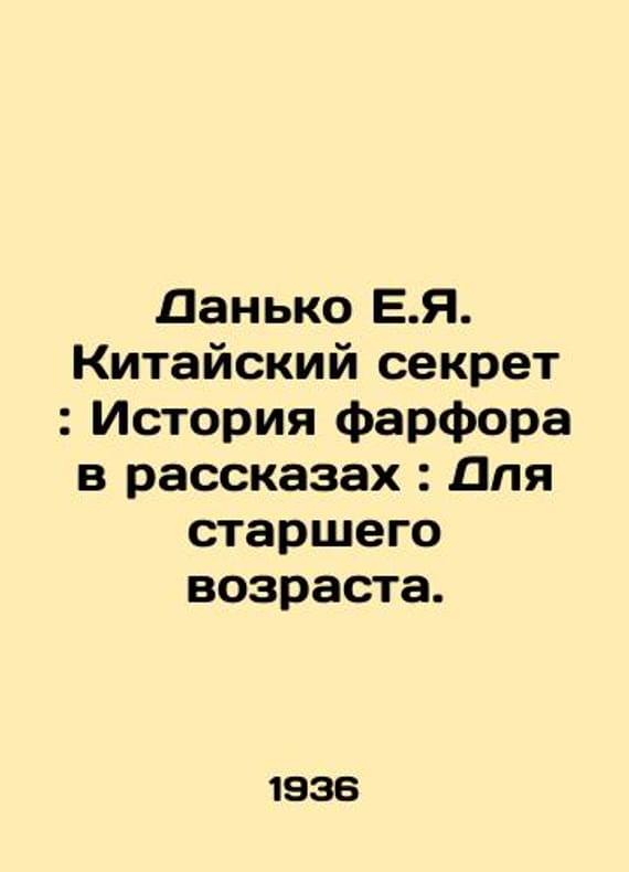 Danko E.Y. Chinese Secret: The History of Porcelain in Stories: For Older People. In Russian /Danko E.Ya. Kitayskiy sekret: Istoriya farfora v rasskazakh: Dlya starshego vozrasta. Fifth supplemented and corrected edition. Moscow: L. Detizdat of the Central Committee of the All-Union Communist League. 1936. We have thousands of titles and often several copies of each title may be available. Please feel free to contact us for a detailed description of the copies available. SKUalb3f0177e976f9dfe2.