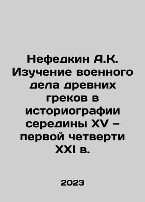 Nefedkin A.K. Study of the military affairs of the ancient Greeks in the historiography of the mid-15th and first quarter of the 21st century In Russian /Nefedkin A.K. Izuchenie voennogo dela drevnikh grekov v istoriografii serediny XV pervoy chetverti XXI v. St. Petersburg St. Petersburg Oriental Studies 2023 700s. We have thousands of titles and often several copies of each title may be available. Please feel free to contact us for a detailed description of the copies available. SKUalb16630d2407683f6b.