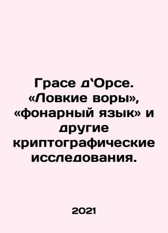 Grasse dOrsay. Thieves, flashlight language, and other cryptographic studies. In Russian /Grase dOrse. «Lovkie vory», «fonarnyy yazyk» i drugie kriptograficheskie issledovaniya. M. Tsiolkovsky 2021. 326 p. We have thousands of titles and often several copies of each title may be available. Please feel free to contact us for a detailed description of the copies available. SKUalb3f1312964fb7d328.