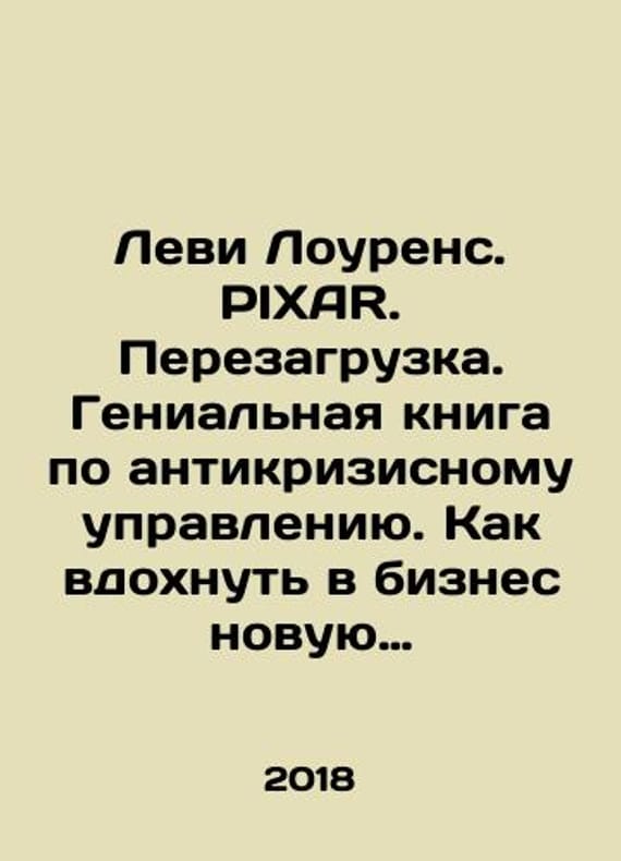 Levi Lawrence. PIXAR. Reloaded. A brilliant book on crisis management. How to breathe new life into business. In Russian /Levi Lourens. PIXAR. Perezagruzka. Genialnaya kniga po antikrizisnomu upravleniyu. Kak vdokhnut v biznes novuyu zhizn. Series: Top Business Awards. M. Exmo 2018.We have thousands of titles and often several copies of each title may be available. Please feel free to contact us for a detailed description of the copies available. SKUalb3f22b07a5f666ff7.