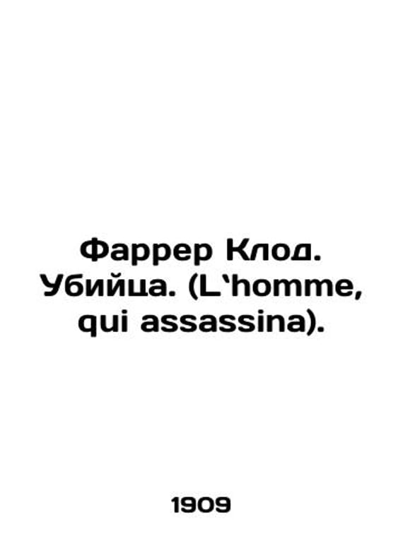 Farrer Claude. Killer. (Lhomme, qui assassina). In Russian /Farrer Klod. Ubiytsa. (Lhomme, qui assassina). Translation of A.P.N. S.Pb.Edition by A.S. Suvorin. 1909. 274 p. We have thousands of titles and often several copies of each title may be available. Please feel free to contact us for a detailed description of the copies available. SKUalb3f6788b53faab2a2.