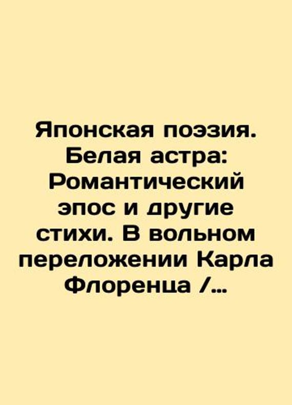 Japanese Poetry. White Astra: A Romantic Epic and Other Poems. In a free translation by Carl Florenz / Japanische Dichtungen. Weissaster. Ein romantisches epos. Nebst anderen gedichten. Frei nachgebildet von Karl Florenz. In Russian (ask us if in doubt)/Yaponskaya poeziya. Belaya astra: Romanticheskiy epos i drugie stikhi. V volnom perelozhenii Karla Florentsa / Japanische Dichtungen. Weissaster. Ein romantisches epos. Nebst anderen gedichten. Frei nachgebildet von Karl Florenz.. Japanese Poetry. White Astra: A Romantic Epic and Other Poems. In a free translation by Carl Florenz / Japanische Dichtungen. Weissaster. Ein romantisches epos. Nebst anderen gedichten. Frei nachgebildet von Karl Florenz. SKUalb3fd93d0f6752decc.
