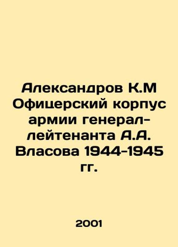 Aleksandrov K.M Officer Corps of the Army of Lieutenant General A.A. Vlasov 1944-1945 In Russian /Aleksandrov K.M Ofitserskiy korpus armii general- leytenanta A.A. Vlasova 1944-1945 gg. S.Pb.BLITS, 2001. 360 p. We have thousands of titles and often several copies of each title may be available. Please feel free to contact us for a detailed description of the copies available. SKUalb3fefbe3fc377279e.