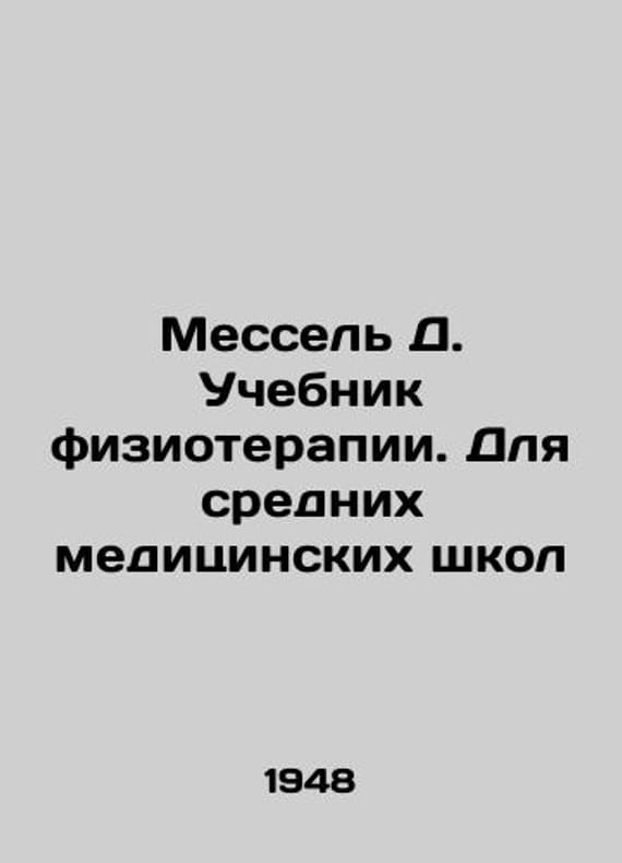 Messel D. Physical Therapy Textbook. For Secondary Medical Schools In Russian /Messel D. Uchebnik fizioterapii. Dlya srednikh meditsinskikh shkol Recommended management of secondary medical schools of the Ministry of Health of the USSR for secondary medical schools of Medgiz 1948. 420 p. We have thousands of titles and often several copies of each title may be available. Please feel free to contact us for a detailed description of the copies available. SKUalb3ff8b5fd8fcaa2b9.