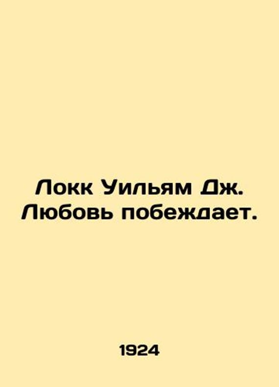Locke William J. Love Wins. In Russian /Lokk Uilyam Dzh. Lyubov pobezhdaet. Novel of Modern Problems by N.A.Stollyar, 1924. 305s. We have thousands of titles and often several copies of each title may be available. Please feel free to contact us for a detailed description of the copies available. SKUalb3ff952f91870e689.
