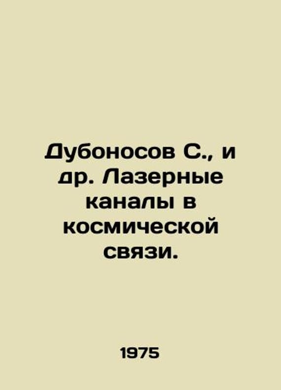 Dubonosov S., et al. Laser channels in cosmic communication. In Russian /Dubonosov S., i dr. Lazernye kanaly v kosmicheskoy svyazi. M Knowledge 1975. We have thousands of titles and often several copies of each title may be available. Please feel free to contact us for a detailed description of the copies available. SKUalb4004b2e11ea43b0b.