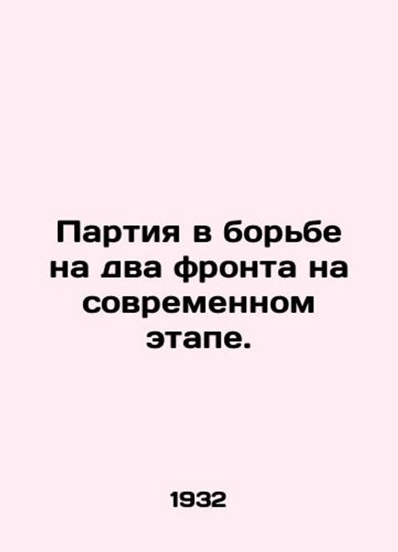 The party is fighting on two fronts at the present stage. In Russian /Partiya v borbe na dva fronta na sovremennom etape. Academic Materials for a Mass Network of Party Education. Issue 9. M. Party Publishing House 1932. We have thousands of titles and often several copies of each title may be available. Please feel free to contact us for a detailed description of the copies available. SKUalb4062e4f9a69cc1b1.