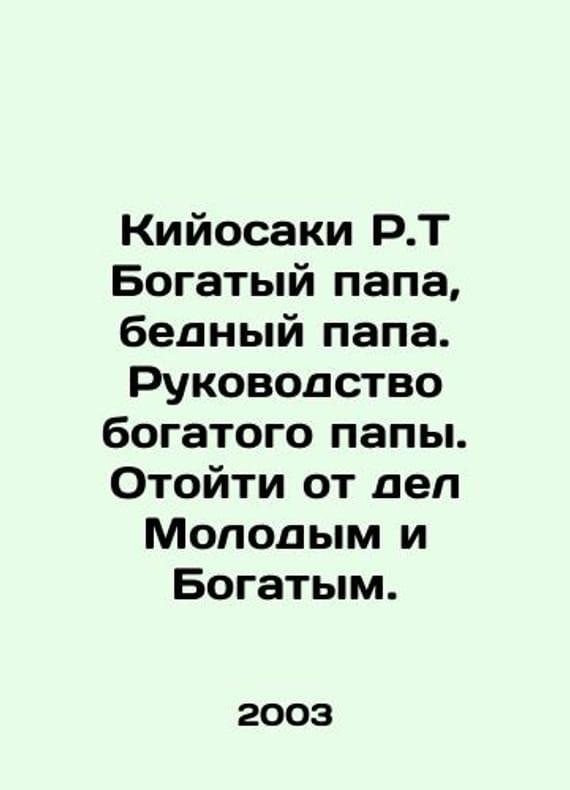 Kiyosaki R.T Rich dad, poor dad. Rich dads guide. Leave the Young and Rich. In Russian /Kiyosaki R.T Bogatyy papa, bednyy papa. Rukovodstvo bogatogo papy. Otoyti ot del Molodym i Bogatym. Success series. Minsk Popurri 2001, 2003.We have thousands of titles and often several copies of each title may be available. Please feel free to contact us for a detailed description of the copies available. SKUalb40827995bd0fd045.