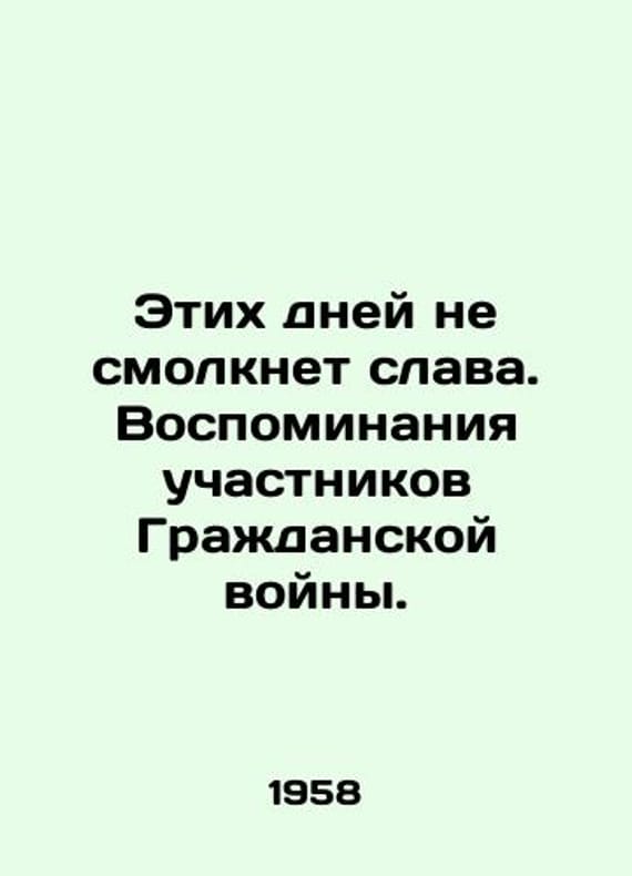 These days will not be silenced by glory. Memories of the Civil War. In Russian /Etikh dney ne smolknet slava. Vospominaniya uchastnikov Grazhdanskoy voyny. : Komarova M., Kostrikina Z., Likhacheva R., Meshman F., Tolpalette knife A. Ed. Verkhovtsev I. Decoration of the head. Simagina N. M. Moscow. Gopolitizdat. 1958. 376s. We have thousands of titles and often several copies of each title may be available. Please feel free to contact us for a detailed description of the copies available. SKUalb40b21fa6fad5cd24.