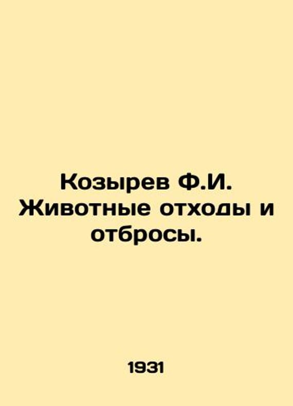 Kozyrev F.I. Animal waste and waste. In Russian /Kozyrev F.I. Zhivotnye otkhody i otbrosy. M-L Selkhozgiz 1931. 136s. We have thousands of titles and often several copies of each title may be available. Please feel free to contact us for a detailed description of the copies available. SKUalb40d48f56fcc55014.