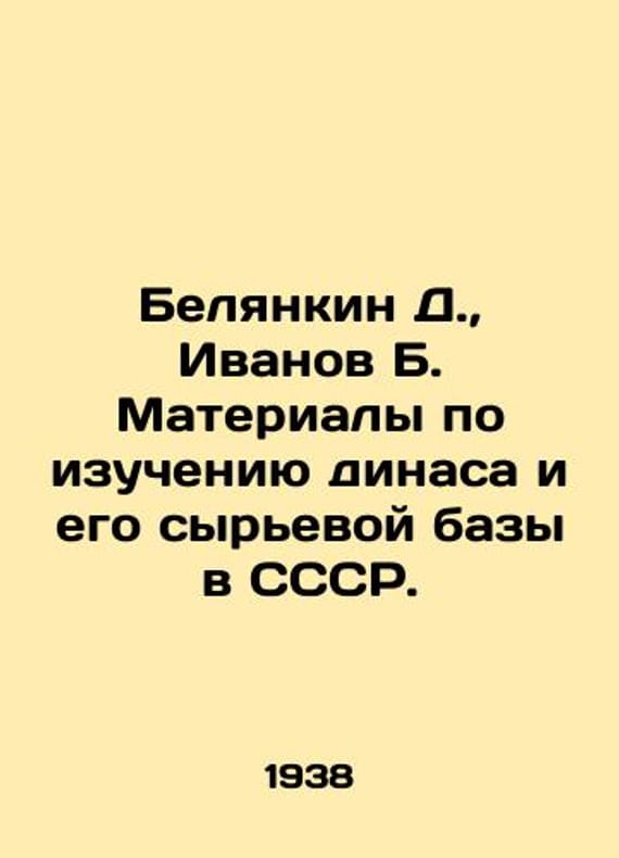 Belyankin D., Ivanov B. Materials on the study of the dynasty and its raw material base in the USSR. In Russian /Belyankin D., Ivanov B. Materialy po izucheniyu dinasa i ego syrevoy bazy v SSSR. Under the Red.akad.Levinson-Lessing F. M.-L. AS USSR 1938. Circulation 2000. We have thousands of titles and often several copies of each title may be available. Please feel free to contact us for a detailed description of the copies available. SKUalb4133c34befa6bb7a.