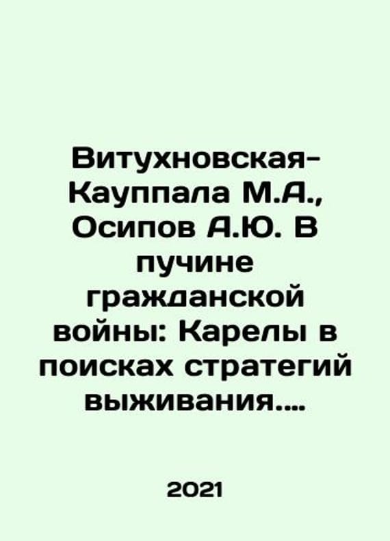 Vitukhnovskaya-Kauppala M.A., Osipov A.Yu. In the depths of civil war: the Karels in search of survival strategies. 1917-1922. In Russian /Vitukhnovskaya-Kauppala M.A., Osipov A.Yu. V puchine grazhdanskoy voyny: Karely v poiskakh strategiy vyzhivaniya. 1917-1922. St. Petersburg. Nestor-istoriya. 2021. 352s. We have thousands of titles and often several copies of each title may be available. Please feel free to contact us for a detailed description of the copies available. SKUalb417d3034f5c30084.