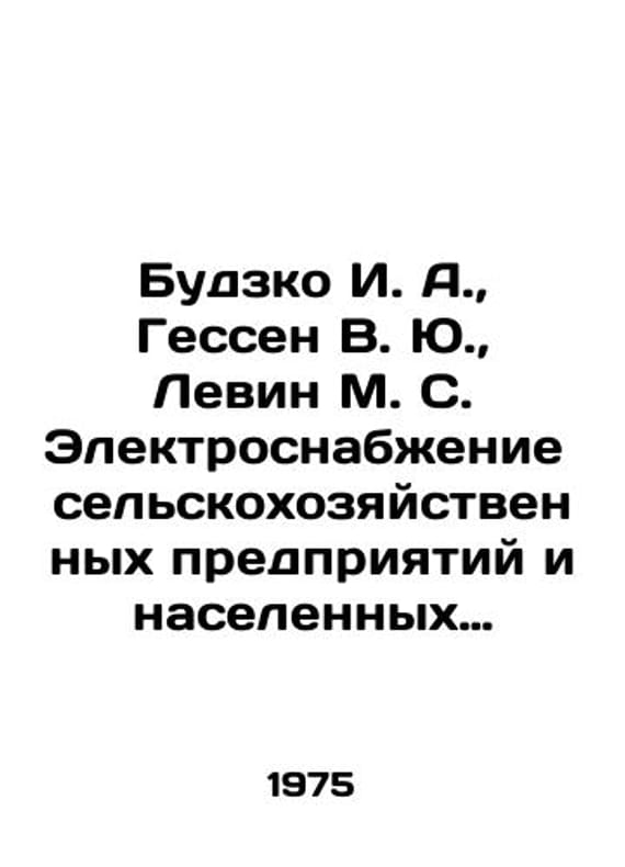 Budzko I. A., Hesse V. Yu., Levin M. S. Electricity supply to agricultural enterprises and settlements In Russian /Budzko I. A., Gessen V. Yu., Levin M. S. Elektrosnabzhenie selskokhozyaystvennykh predpriyatiy i naselennykh punktov. Textbooks and teaching aids for higher agricultural education institutions. Moscow, Kolos 1975. We have thousands of titles and often several copies of each title may be available. Please feel free to contact us for a detailed description of the copies available. SKUalb4208195409968b54.