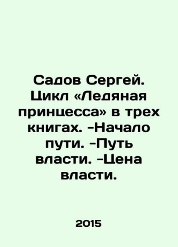 Sergei Sadov: The Ice Princess Cycle in three books. -The beginning of the road. -The path of power. -The price of power. In Russian /Sadov Sergey. Tsikl «Ledyanaya printsessa» v trekh knigakh. -Nachalo puti. -Put vlasti. -Tsena vlasti. Series: New Heroes. M. Eksmo 2015-2018. 512 and 512 and 608 pages. We have thousands of titles and often several copies of each title may be available. Please feel free to contact us for a detailed description of the copies available. SKUalb4241589c5bacb1bf.