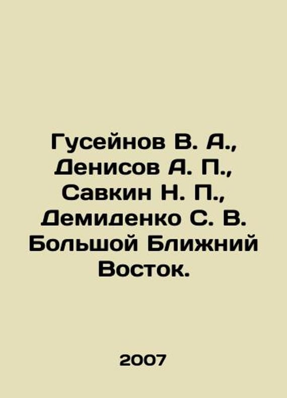 Guseynov V. A., Denisov A., Savkin N., Demidenko S. V. Greater Middle East. In Russian /Guseynov V. A., Denisov A., Savkin N., Demidenko S. V. Bolshoy Blizhniy Vostok. Stimulus and Preliminary Results of Democratization. Institute for Strategic Evaluations and Analysis. Edited by V. A. Huseynov. Moscow: OLMA Media Group, 2007. We have thousands of titles and often several copies of each title may be available. Please feel free to contact us for a detailed description of the copies available. SKUalb4243cdb41d08bde9.