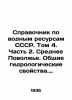 Reference book on water resources of the USSR. Volume 4. Part 2. Middle Volga region. General hydrological properties. Water use. In Russian /Spravochnik po vodnym resursam SSSR. Tom 4. Chast 2. Srednee Povolzhe. Obshchie gidrologicheskie svoystva. Ispolzovanie vod. Leningrad Department of ZUGMS, 1935. 338 p. We have thousands of titles and often several copies of each title may be available. Please feel free to contact us for a detailed description of the copies available. SKUalb424acabdcd274302.