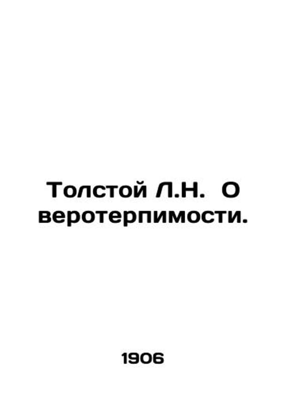 Tolstoy L.N. On religious tolerance. In Russian /Tolstoy L.N. O veroterpimosti. A series of works by Count Leo Nikolaevich Tolstoy, unpublished in Russia, # 17. St. Petersburg World Herald 1906. We have thousands of titles and often several copies of each title may be available. Please feel free to contact us for a detailed description of the copies available. SKUalb4289d68d3d849c29.