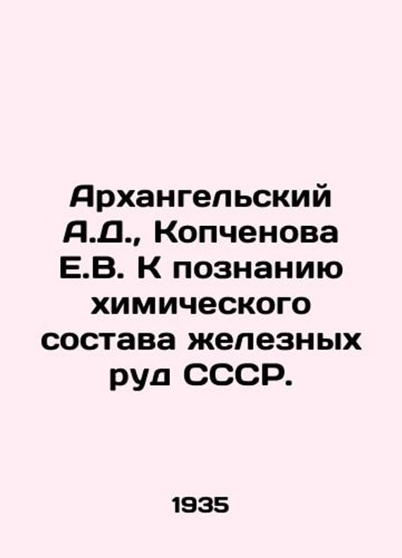 Arkhangelsky A.D., Kopchenova E.V. To Understanding the Chemical Composition of Iron Ores of the USSR. In Russian /Arkhangelskiy A.D., Kopchenova E.V. K poznaniyu khimicheskogo sostava zheleznykh rud SSSR. M.-L. ONTI NKT 1935. We have thousands of titles and often several copies of each title may be available. Please feel free to contact us for a detailed description of the copies available. SKUalb42c4933e76ddbe68.