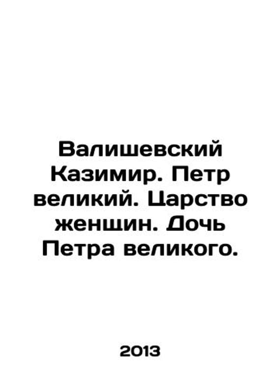 Valiszewski Kazimir. Peter the Great. The Kingdom of Women. Peter the Greats Daughter. In Russian /Valishevskiy Kazimir. Petr velikiy. Tsarstvo zhenshchin. Doch Petra velikogo. Series: Complete Edition in One Volume. Moscow Alpha-Book 2013. We have thousands of titles and often several copies of each title may be available. Please feel free to contact us for a detailed description of the copies available. SKUalb42e8e3c01a7fa3b3.