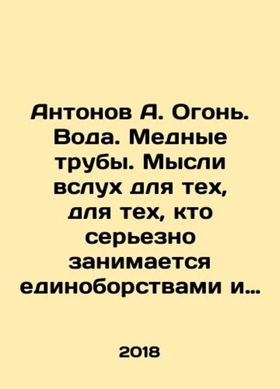 Antonov A. Fire. Water. Copper pipes. Thoughts out loud for those who seriously engage in martial arts and sincerely seek God. In Russian /Antonov A. Ogon. Voda. Mednye truby. Mysli vslukh dlya tekh, dlya tekh, kto serezno zanimaetsya edinoborstvami i iskrenne ishchet Boga.Kolomna Publisher Nadi Kasimov 2018.We have thousands of titles and often several copies of each title may be available. Please feel free to contact us for a detailed description of the copies available. SKUalb42f563b69d22ae3d.