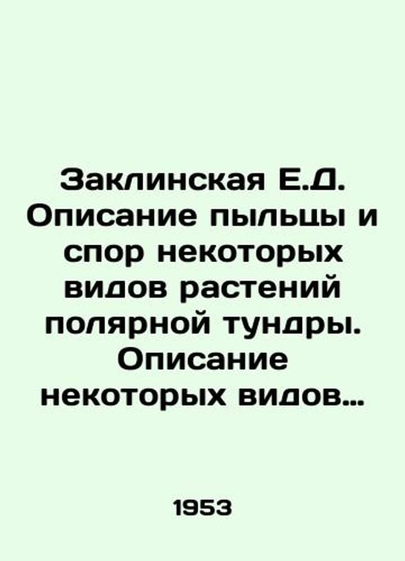 Zaklinskaya E.D. Description of pollen and spores from some species of plants in the polar tundra. Description of some species of pollen and spores extracted from the tertiary deposits of the Pasekovsky quarry in the Voronezh region. In Russian /Zaklinskaya E.D. Opisanie pyltsy i spor nekotorykh vidov rasteniy polyarnoy tundry. Opisanie nekotorykh vidov pyltsy i spor, vydelennykh iz tretichnykh otlozheniy Pasekovskogo karera Voronezhskoy oblasti.Proceedings of the Institute of Geological Sciences. M. Publishing House of the USSR Academy of Sciences 1953.We have thousands of titles and often several copies of each title may be available. Please feel free to contact us for a detailed description of the copies available. SKUalb432dc84b0915ee6e.