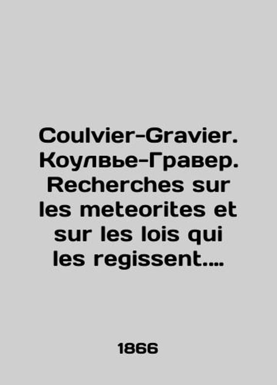 Coulvier-Gravier. Colvier-Graver. Recherches sur les meteorites et sur les lois qui les regisent. Research on meteorites and the laws that regulate them. In Russian (ask us if in doubt)/Coulvier-Gravier. Koulve-Graver. Recherches sur les meteorites et sur les lois qui les regissent. Issledovaniya meteoritov i zakonov kotorye ikh reguliruyut. Paris. Henri Plon imprimeur-editeur. Publishing House of Henri Plon 1866. XXXIV 2 372c. il. 7h.gr.il. Normal format 135x215 mm. SKUalb435a269dbb18fff3.
