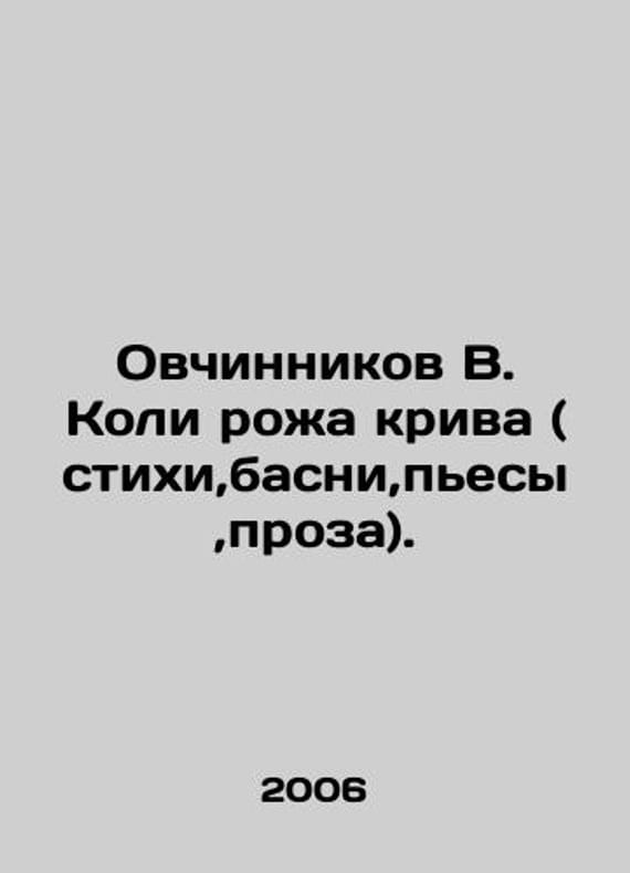 Sheepshinnikov V. Kolya rye crova (poems, fables, plays, prose). In Russian /Ovchinnikov V. Koli rozha kriva (stikhi,basni,pesy,proza). M. ACADEMIA 2006. 176 p. We have thousands of titles and often several copies of each title may be available. Please feel free to contact us for a detailed description of the copies available. SKUalb43c69bddfd3a1870.