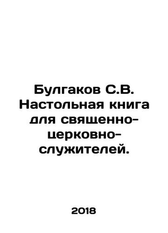 Bulgakov S.V. Table book for clergymen and clergymen. In Russian /Bulgakov S.V. Nastolnaya kniga dlya svyashchenno-tserkovno-sluzhiteley. Reprinted. M Synopsis. 2018. 944 p. We have thousands of titles and often several copies of each title may be available. Please feel free to contact us for a detailed description of the copies available. SKUalb43d8e6d909ea6aea.