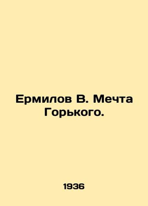 Ermilov V. Gorkys Dream. In Russian /Ermilov V. Mechta Gorkogo. The main ideas of creativity. Artist Radishchev A. M. Soviet writer. 1936. We have thousands of titles and often several copies of each title may be available. Please feel free to contact us for a detailed description of the copies available. SKUalb43ea4c2cd7f01adf.