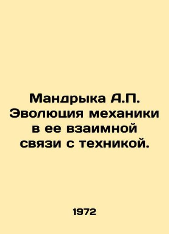 Mandryka A. The evolution of mechanics in its relationship to technology. In Russian /Mandryka A. Evolyutsiya mekhaniki v ee vzaimnoy svyazi s tekhnikoy.Leningrad Science 1972.We have thousands of titles and often several copies of each title may be available. Please feel free to contact us for a detailed description of the copies available. SKUalb444705609e9266bf.