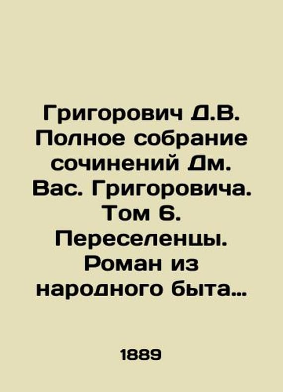 Grigorovich D.V. Complete collection of works by Vas. Grigorovich. Volume 6. Migrants. A novel from folk life (in five parts). In Russian /Grigorovich D.V. Polnoe sobranie sochineniy Dm. Vas. Grigorovicha. Tom 6. Pereselentsy. Roman iz narodnogo byta (v pyati chastyakh). St. Petersburg Book Store Edition by N. G. Martynov, 1889. 8, 439 p. We have thousands of titles and often several copies of each title may be available. Please feel free to contact us for a detailed description of the copies available. SKUalb444b4d8f468d337b.