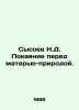 Sysoev N.D. Repentance to Mother Nature. In Russian /Sysoev N.D. Pokayanie pered materyu-prirodoy. Moscow, Publishing House of Moscow University 1999. We have thousands of titles and often several copies of each title may be available. Please feel free to contact us for a detailed description of the copies available. SKUalb4482d59c6ef75eda.