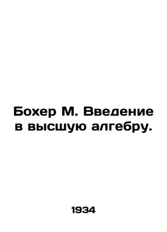 Boher M. Introduction to Higher Algebra. In Russian /Bokher M. Vvedenie v vysshuyu algebru. Translation from German, edited by A.G.Kurosha. M. L. ONTI Publishing House. 1934. We have thousands of titles and often several copies of each title may be available. Please feel free to contact us for a detailed description of the copies available. SKUalb44ac3d991151c1f5.