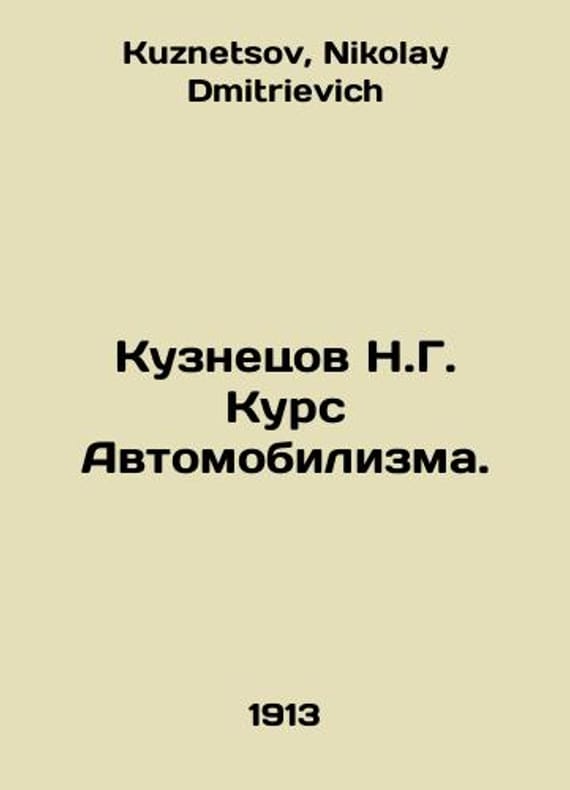 Kuznetsov N.G. Course of Automobiles. In Russian /Kuznetsov N.G. Kurs Avtomobilizma. St. Petersburg Type. Akts. General Typographic Affair in St. Petersburg. 1913. 350 p. We have thousands of titles and often several copies of each title may be available. Please feel free to contact us for a detailed description of the copies available. SKUalb44ce4390da5a44d7.