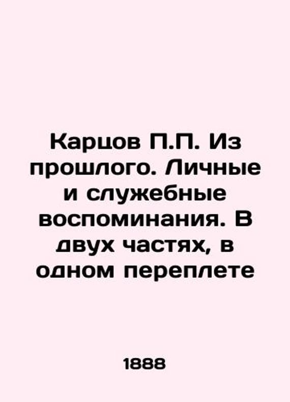 P.P. Kartsov From the Past. Personal and Official Memories. In Two Parts in One Binder In Russian (ask us if in doubt)/Kartsov P.P. Iz proshlogo. Lichnye i sluzhebnye vospominaniya. V dvukh chastyakh v odnom pereplete Short description: In Russian (ask us if in doubt).Part One: 1831-1876. Part Two: 1876-1878 We have thousands of titles and often several copies of each title may be available. Please feel free to contact us for a detailed description of the copies available. SKUalb44de7eed4779dc20