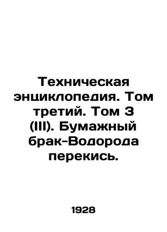 Technical Encyclopedia. Volume Three. Volume 3 (III). Paper-Hydrogen Peroxide. In Russian (ask us if in doubt)/Tekhnicheskaya entsiklopediya. Tom tretiy. Tom 3 (III). Bumazhnyy brak-Vodoroda perekis.. Editor-in-Chief L. K. Martens. Moscow. Joint Stock Company Soviet Encyclopedia. 1928. 480 p. SKUalb44eb41bd7a4a387c.