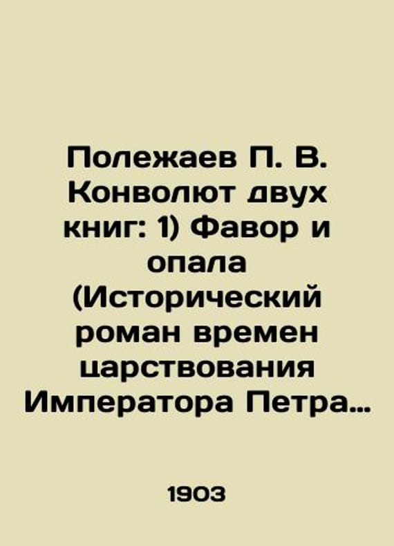 Polezhaev P.V. Convolutee of two books: 1) Favor and Opal (Historical novel from the reign of Emperor Peter II) In Russian (ask us if in doubt)/Polezhaev P. V. Konvolyut dvukh knig: 1) Favor i opala (Istoricheskiy roman vremen tsarstvovaniya Imperatora Petra II). 2) Lopukhinskoe delo. Istoricheskaya povest vremen tsarstvovaniya Imperatritsy Elisavety Petrovny Third Edition. Series: Intrigues and Executions from the History of the 18th Century. Edition by V.I. Gubinsky. St. Petersburg: State Printing House 1903. 165 and 154s. We have thousands of titles and often several copies of each title may be available. Please feel free to contact us for a detailed description of the copies available. SKUalb4509464cc501fb88