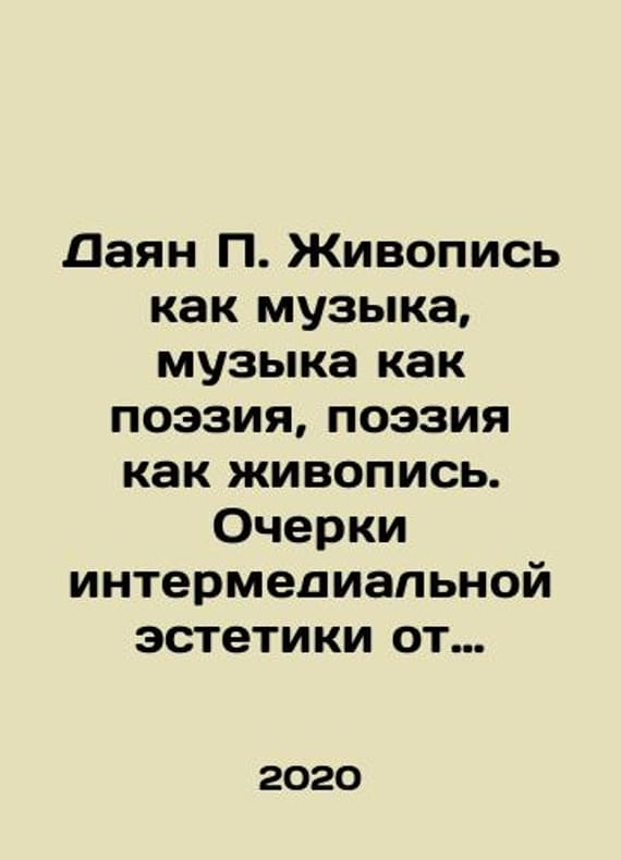 Dayan P. Painting as music, music as poetry, poetry as painting. Essays on the intermedia aesthetic from Whistler to Stravinsky and later. In Russian /Dayan P. Zhivopis kak muzyka, muzyka kak poeziya, poeziya kak zhivopis. Ocherki intermedialnoy estetiki ot Uistlera do Stravinskogo i pozdnee. Novikov Publishing House, St. Petersburg, 2020, 256 p. We have thousands of titles and often several copies of each title may be available. Please feel free to contact us for a detailed description of the copies available. SKUalb45596227df1f9a41.
