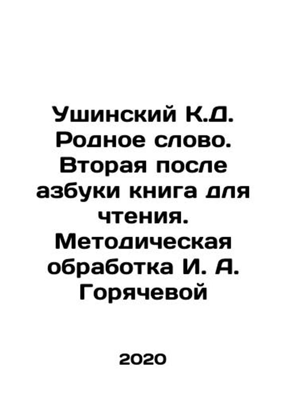 Ushinsky K.D. The native word. The second book after the alphabet for reading. Methodological processing by I. A. Goryacheva In Russian /Ushinskiy K.D. Rodnoe slovo. Vtoraya posle azbuki kniga dlya chteniya. Metodicheskaya obrabotka I. A. Goryachevoy Educational System: Russian Classical School Ekaterinburg City Printing House 2020. We have thousands of titles and often several copies of each title may be available. Please feel free to contact us for a detailed description of the copies available. SKUalb4596980776cafb75.