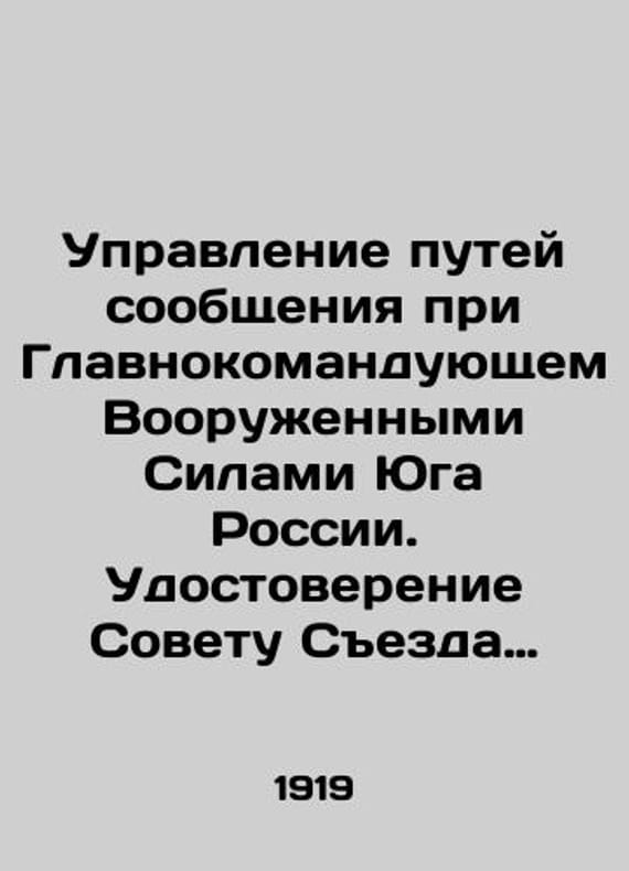 Directorate of Communications under the Commander-in-Chief of the Armed Forces of the South of Russia. Certification to the Council of the Congress of Mining Industrialists of the South of Russia. In Russian /Upravlenie putey soobshcheniya pri Glavnokomanduyushchem Vooruzhennymi Silami Yuga Rossii. Udostoverenie Sovetu Sezda Gornopromyshlennikov Yuga Rossii. Issued to the Manager of the Council of the Congress of Mining Industrialists of Southern Russia, mining engineer Boris Nikolaevich Sokolov, and Rostov-on-Don, 1919. 1 17x21 sm. We have thousands of titles and often several copies of each title may be available. Please feel free to contact us for a detailed description of the copies available. SKUalb45989d950e653831.
