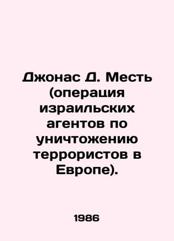 Jonas D. Revenge (an operation by Israeli agents to destroy terrorists in Europe). In Russian (ask us if in doubt)/Dzhonas D. Mest (operatsiya izrailskikh agentov po unichtozheniyu terroristov v Evrope).New York Liberty publishing house 1986. Illustrations by H. Meyer. A complete analogue to Detgizs small . We have thousands of titles and often several copies of each title may be available. Please feel free to contact us for a detailed description of the copies available. SKUalb463a96030b4c876f