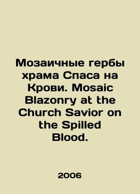 Mosaic Coats of Arms of the Church of the Savior on Blood. Mosaic Blazonry at the Church Savior on the Spilled Blood. In Russian /Mozaichnye gerby khrama Spasa na Krovi. Mosaic Blazonry at the Church Savior on the Spilled Blood. St. Petersburg, Zimin Publishing House, 2006, 152 p., p. We have thousands of titles and often several copies of each title may be available. Please feel free to contact us for a detailed description of the copies available. SKUalb463eba4622dc3e1a.