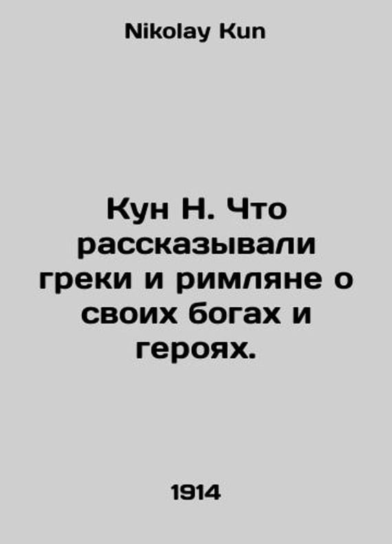 Kun N. What did the Greeks and Romans say about their gods and heroes? In Russian /Kun N. Chto rasskazyvali greki i rimlyane o svoikh bogakh i geroyakh. Part 1. of 62 illustrations in the text and 16 illustrations on separate pages. Moscow, Type T-va I. N. Kushneryov and Co, 1914. VIII, 289s. We have thousands of titles and often several copies of each title may be available. Please feel free to contact us for a detailed description of the copies available. SKUalb464db691b2084a06.