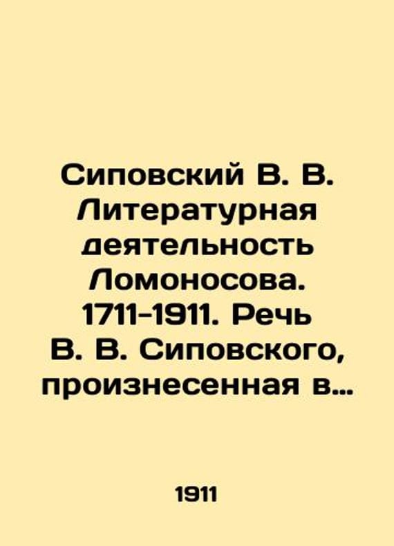 Sipovsky V. V. Literary Activity of Lomonosov. 1711-1911. Speech by V. V. Sipovsky, delivered at the Solemn Meeting of the Imperial Academy of Sciences on November 8, 1911 in memory of the 200th anniversary of the birth of M. V. Lomonosov. In Russian /Sipovskiy V. V. Literaturnaya deyatelnost Lomonosova. 1711-1911. Rech V. V. Sipovskogo, proiznesennaya v Torzhestvennom Sobranii Imperatorskoy Akademii Nauk 8 noyabrya 1911 goda v pamyat 200-letiya so dnya rozhdeniya M. V. Lomonosova. S-Pb. Typography Imp. AS 1911. We have thousands of titles and often several copies of each title may be available. Please feel free to contact us for a detailed description of the copies available. SKUalb466ebe622fa8a6c3.