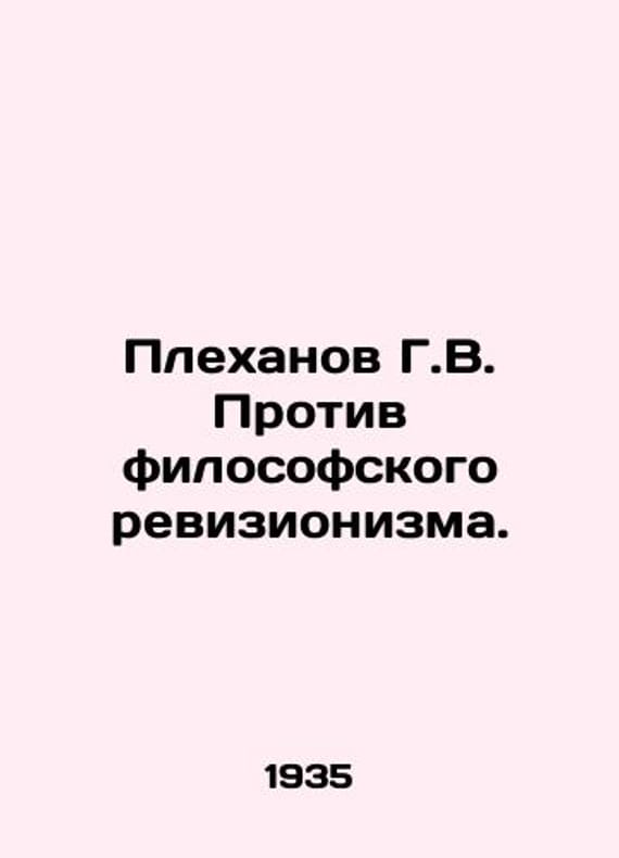 G.V. Plekhanov against philosophical revisionism. In Russian /Plekhanov G.V. Protiv filosofskogo revizionizma. A collection of articles by M. State. Socio-Economic Publishing House 1935. We have thousands of titles and often several copies of each title may be available. Please feel free to contact us for a detailed description of the copies available. SKUalb46b4bb16ce8342a5.