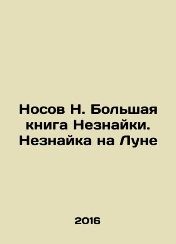 N. The Big Book of the Stranger. The Stranger on the Moon In Russian /Nosov N. Bolshaya kniga Neznayki. Neznayka na Lune Mahaon 2016 416s. We have thousands of titles and often several copies of each title may be available. Please feel free to contact us for a detailed description of the copies available. SKUalb46c7f2eaf5c594db.