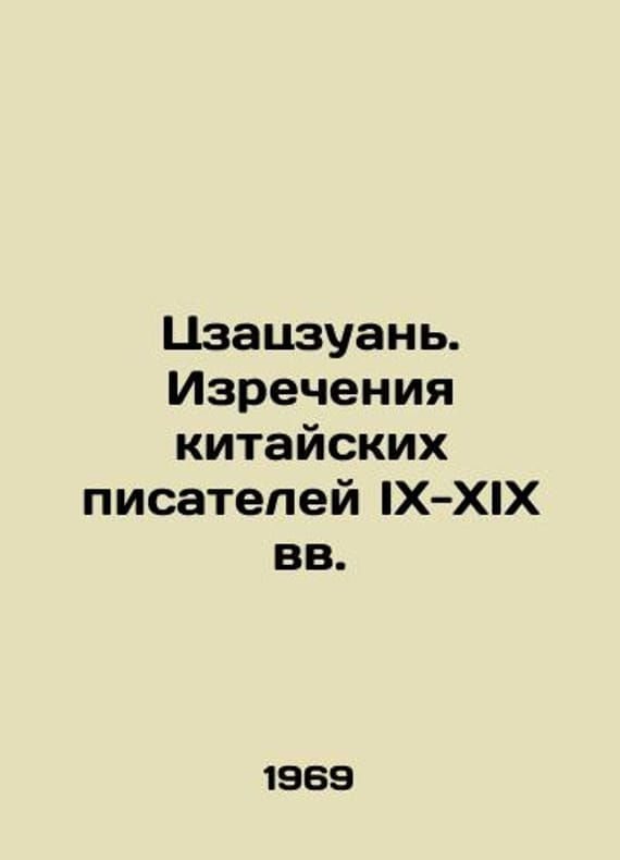 Zazuan. The Sayings of Chinese Writers in the 9th-19th Centuries In Russian /Tszatszuan. Izrecheniya kitayskikh pisateley IX-XIX vv. M. Nauka. 1969. 104 p. We have thousands of titles and often several copies of each title may be available. Please feel free to contact us for a detailed description of the copies available. SKUalb46e6c16d6c41807b.