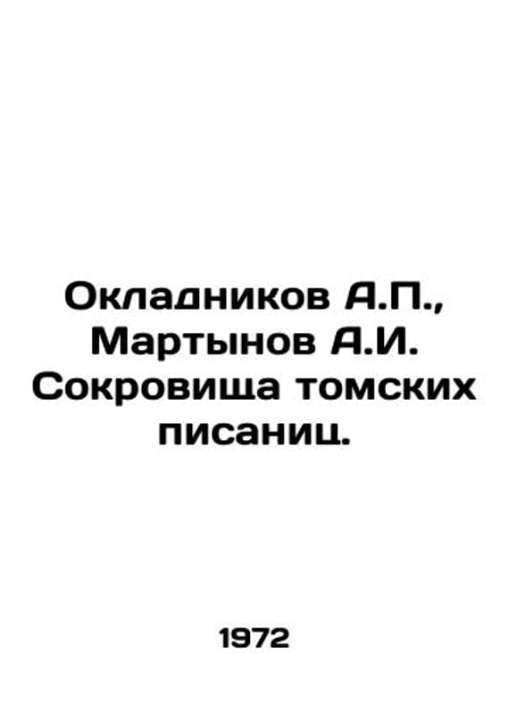 Okladnikov A., Martynov A.I. Treasures of Tomsk Writers. In Russian /Okladnikov A., Martynov A.I. Sokrovishcha tomskikh pisanits. Neolithic and Bronze Rock Drawings. Series: Monuments of Ancient Art. M. Art 1972. We have thousands of titles and often several copies of each title may be available. Please feel free to contact us for a detailed description of the copies available. SKUalb470ef73e624859c0.