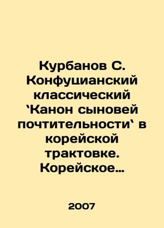 Kurbanov S. Confucian Classical Canon of Sons of Honor, as interpreted in Korean. Korean perception of the universal category of parental respect. In Russian /Kurbanov S. Konfutsianskiy klassicheskiy Kanon synovey pochtitelnosti v koreyskoy traktovke. Koreyskoe vospriyatie universalnoy kategorii pochtitelnosti k roditelyam. St. Petersburg State University. 2007. 280 p. We have thousands of titles and often several copies of each title may be available. Please feel free to contact us for a detailed description of the copies available. SKUalb47f4801dce9bdcb3.
